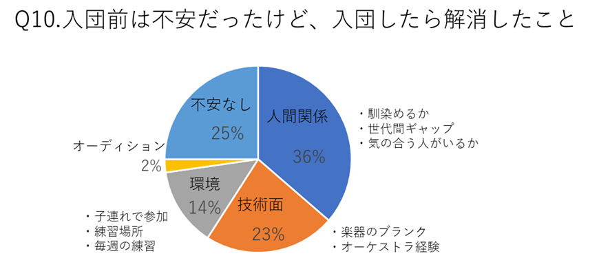 エキストラから入団したり、演奏会でレベルを確認したりした25%の人は不安がなかったのですが、多くは何らかの不安を抱えて入団します。